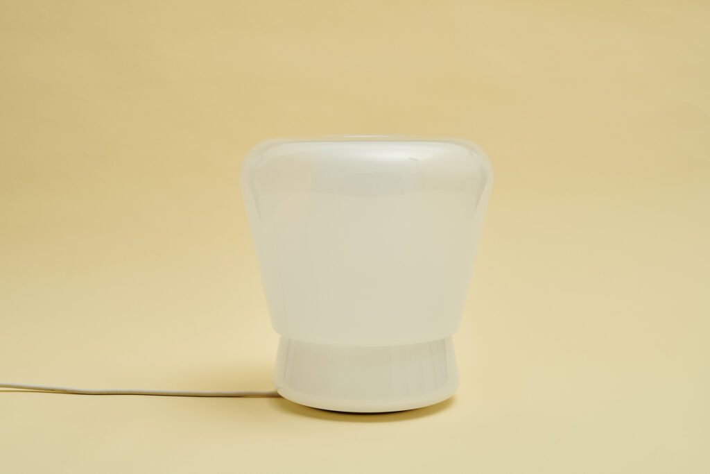 Die Tischleuchte Jumelle geht auf eine Auseinandersetzung mit der Arbeit Wilhelm Wagenfelds zurück, insbersondere auf dessen doppelwandige Leuchtenentwürfe. Der Entwurf für diese Leuchte besteht aus drei Einzelkomponenten, welche einfach aufeinander gesetzt werden können: ein runder Aluminiumteller, welcher die Licht-quelle aufnimmt, sowie zwei mundgeblasene Glaskörper. Das Licht strahlt vom Bodenin die doppelwandigen übereinander geschichteten Gläser: Ein räumlicher Lichtkörper ensteht.