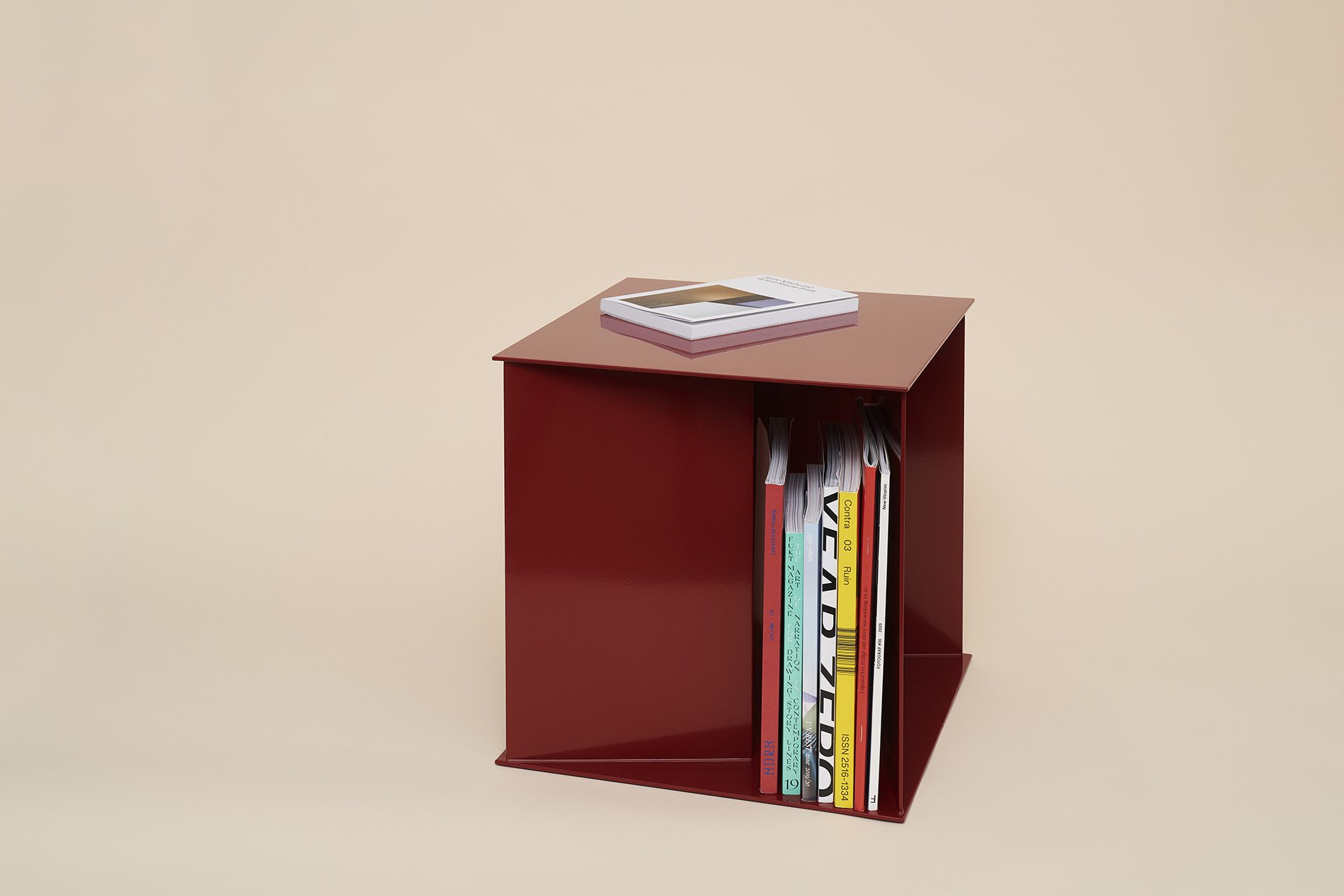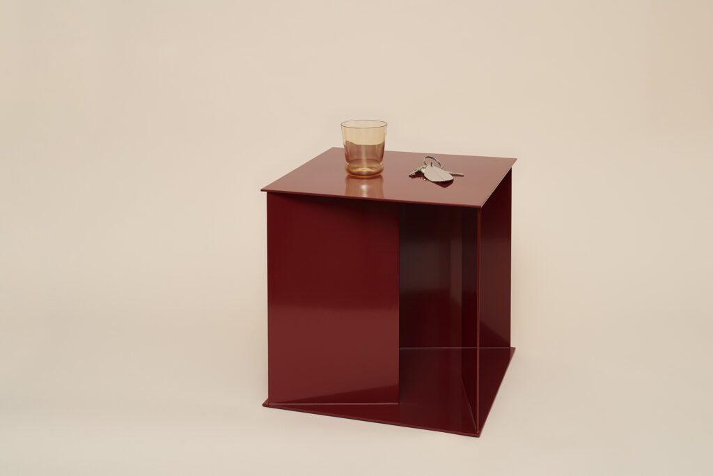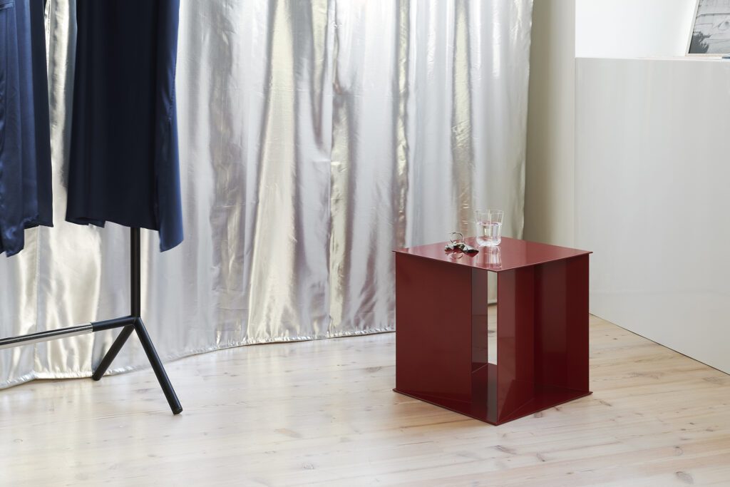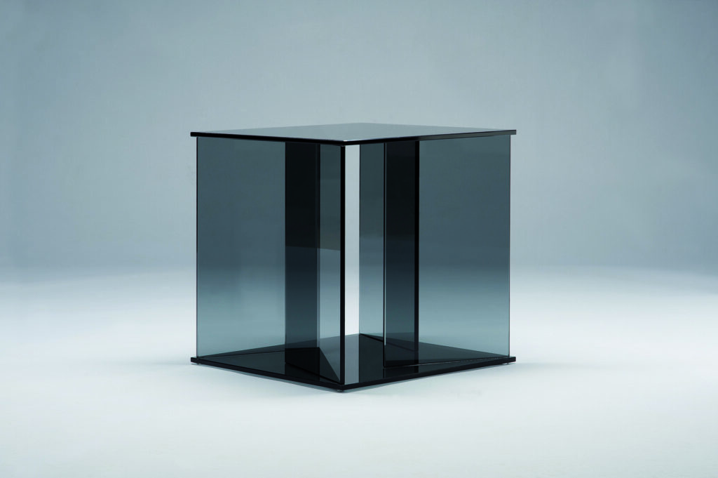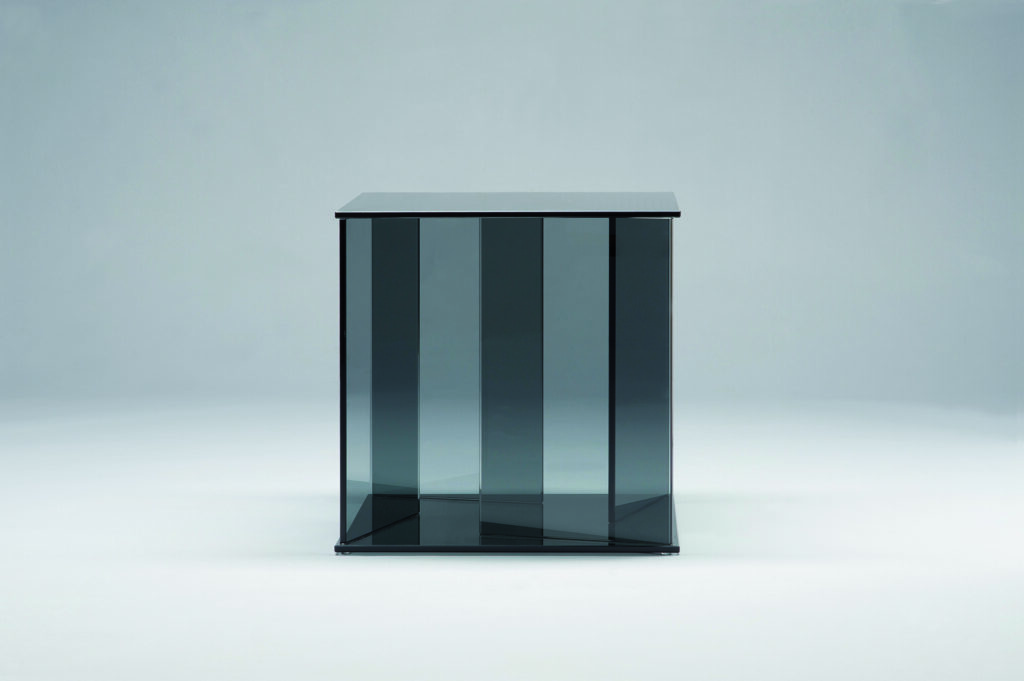 The sidetable Qudd shows one spatial, separated unit of the shelf Qudd. The different materials distinguish and reveal the geometrical structure of Qudd. They are showing the tension between transparency and non-transparency and the different effects of light and shadow. The side table can be used single or in a group.