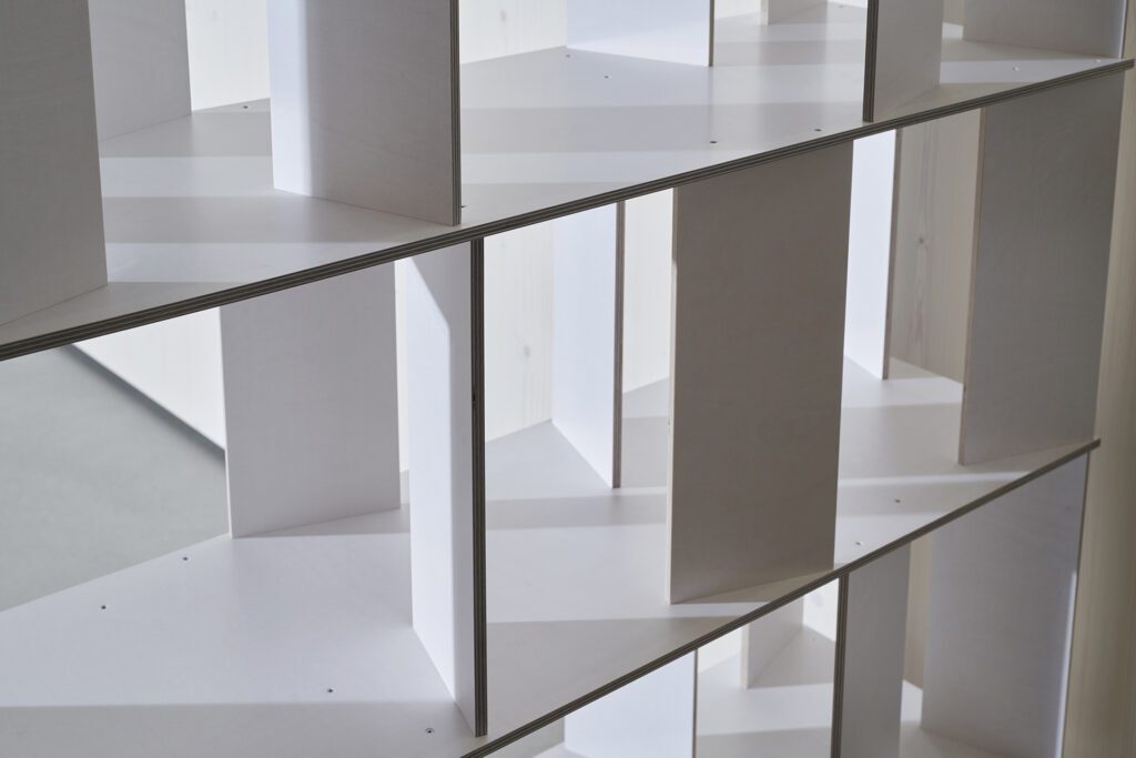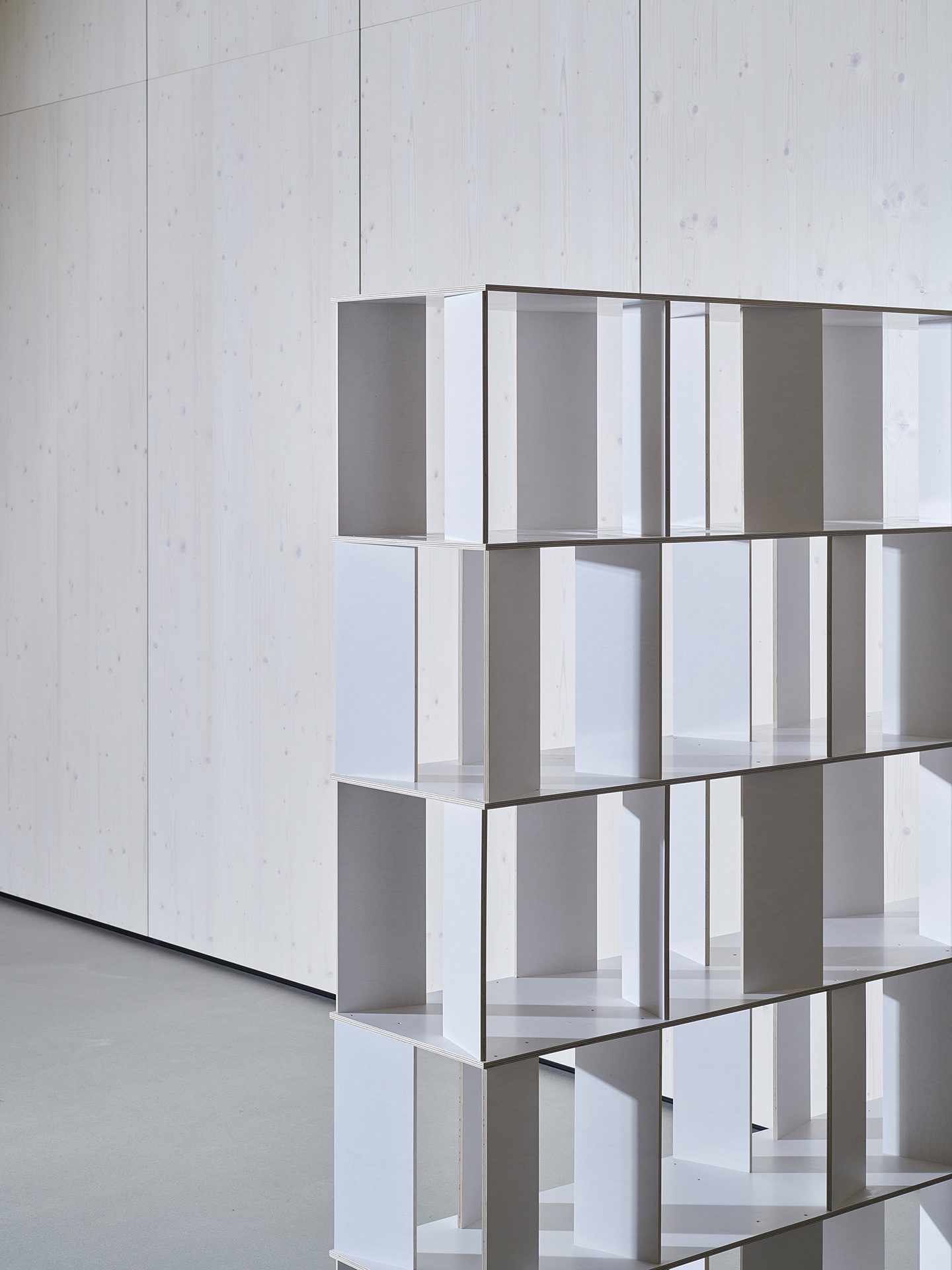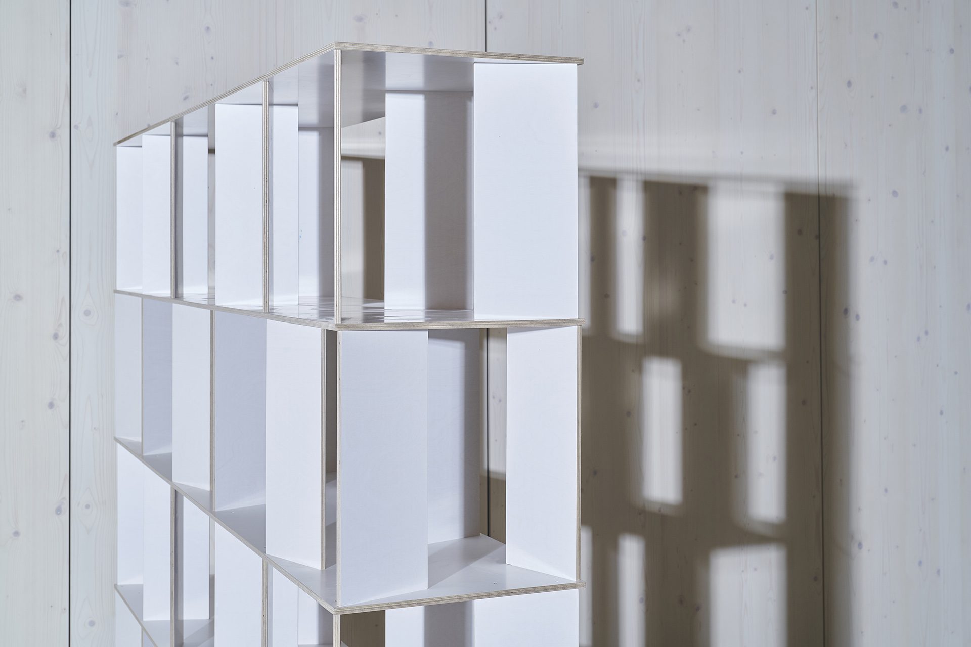 Qudd is inspired by the works of artist Donald Judd. The parts of the shelf are following a strict rhythmical principal. With the beauty of light and shadow, it is creating a three-dimensional picture.