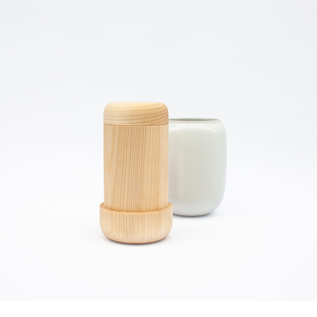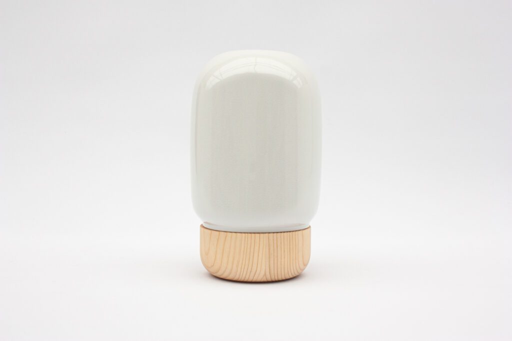REMEBER is a minimalist urns for cats and other small pets. The glazed porcelain dome encases the wooden core. That way you can´t draw any conclusions about the purpose of the urn, at first glance. The two-piece urn is designed to accompanies you through the most difficult days, weeks, months, … until you are ready to let go. The biodegradable wooden core of the urn can be used to bury the ashes if you choose to do so after the initial phase of mourning. The porcelain part of the urn, on the other hand, will remain with you after the burial and find its place in your home as a stylish vase. That way, you can keep your beloved pet close to you in fond memory.
