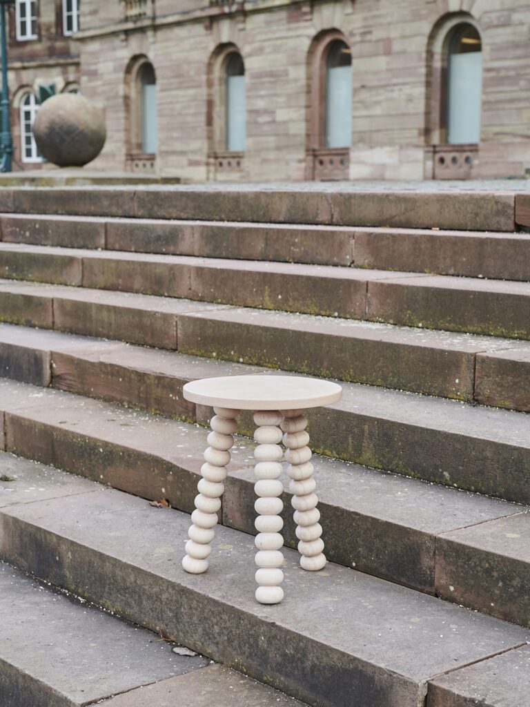 Threaded like pearls on a chain – the legs of the stool 1810 are turned from wood and are reminiscent of historical furniture types in Italy of the 19th century.