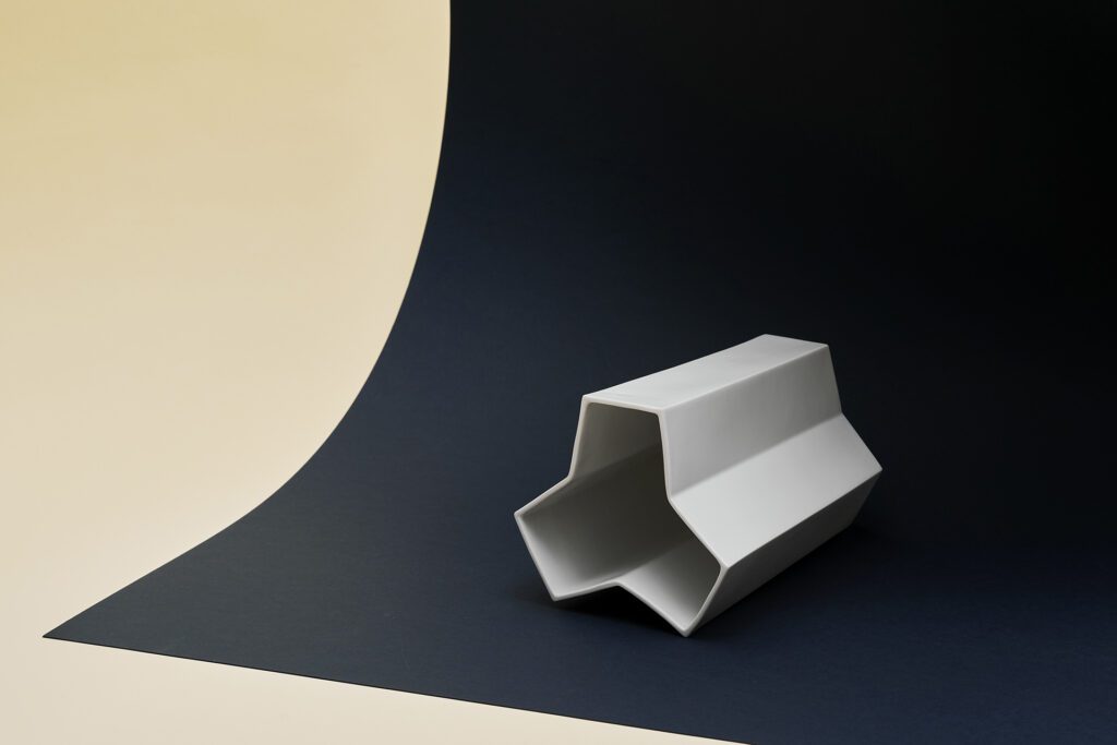 Die Kollektion Trapeze ist inspiriert von der Auseinandersetzung mit geometrischen Formen. Alle Formen basieren auf dem geometrischen Trapez und seiner Umkehrung. Vasen, Schalen und Tafeln lassen sich wie ein Puzzle kombinieren und zueinander stellen. Aus verschiedenen Materialien wie Porzellan, Stahl und Marmor gefertigt, können sie ganz unterschiedliche Anordnungen bilden.