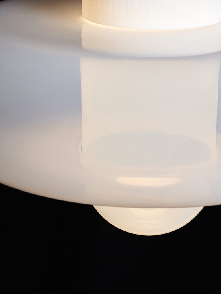 The pendant lamp TYP is part of the project „Wagenfeld revisited“ in the context of the exhibition „Lamps of the Modern Era“. The design takes up the container-like quality that is found in Wilhelm Wagenfeld’s design (Modell 2462/M/Typ 54) of 1931 and starts a new interpretation of it. The glass parts of the lamp are intermeshed with each other so as to make a light space come about as a result. The M/Typ 54 lamp had three parts too, while each of the three glass parts differ not only in form, but also in materiality of the glass.