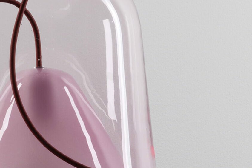 Der Entwurf der Hängeleuchte Vaiss.eau geht auf Formen historischer Glasflaschen zurück: Die für Flaschengläser typische Einwölbung am Flaschenboden werden funktional und ästhetisch neu interpretiert. Der doppelwandiger Glaskörper vereint in einer einzigen Form sowohl Leuchtenschirm, Reflektor und Lichtraum. Die Einstülpung auf der Unterseite ist mattiert, dient als Aufnahme für das Leuchtmittel und gleich-zeitig als Reflektor. Das Kabel wird durch den Hohlraum des Glaskörpers nach oben geführt. Das Innenvolumen bietet Platz, um Windungen des Kabels aufzunehmen und diese zum Gestaltungselement werden zu lassen. Durch den transparenten Ober-körper und die sichtbaren technischen Bauteile wie Kabel und Aufhängung changiert das Bild zwischen Leuchte und technischer Glasapparatur: Sobald sie mit Licht gefüllt wird, scheint sich ein gläserner Lichtbehälter zu bilden: ein leuchtendes Gefäß.