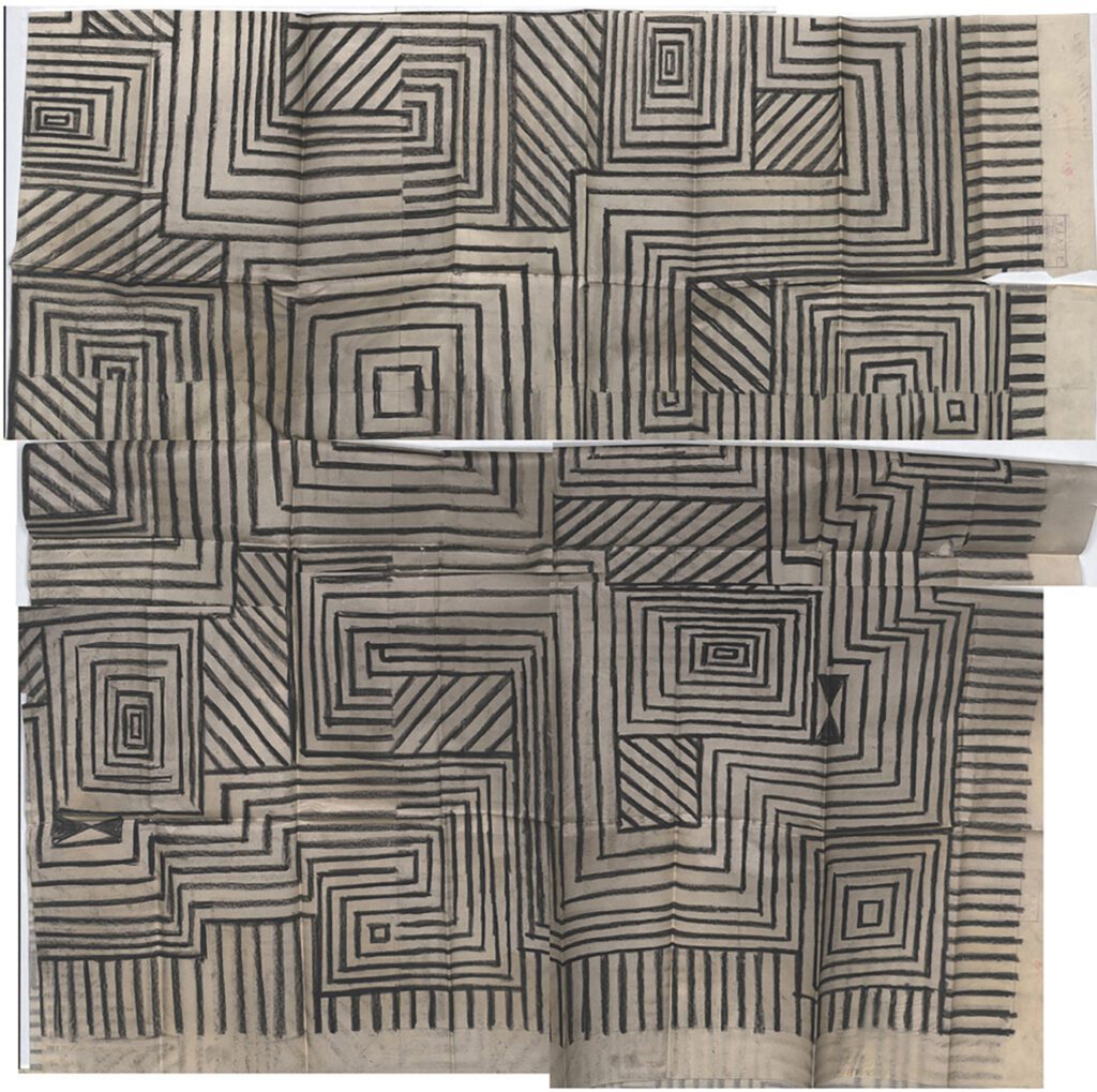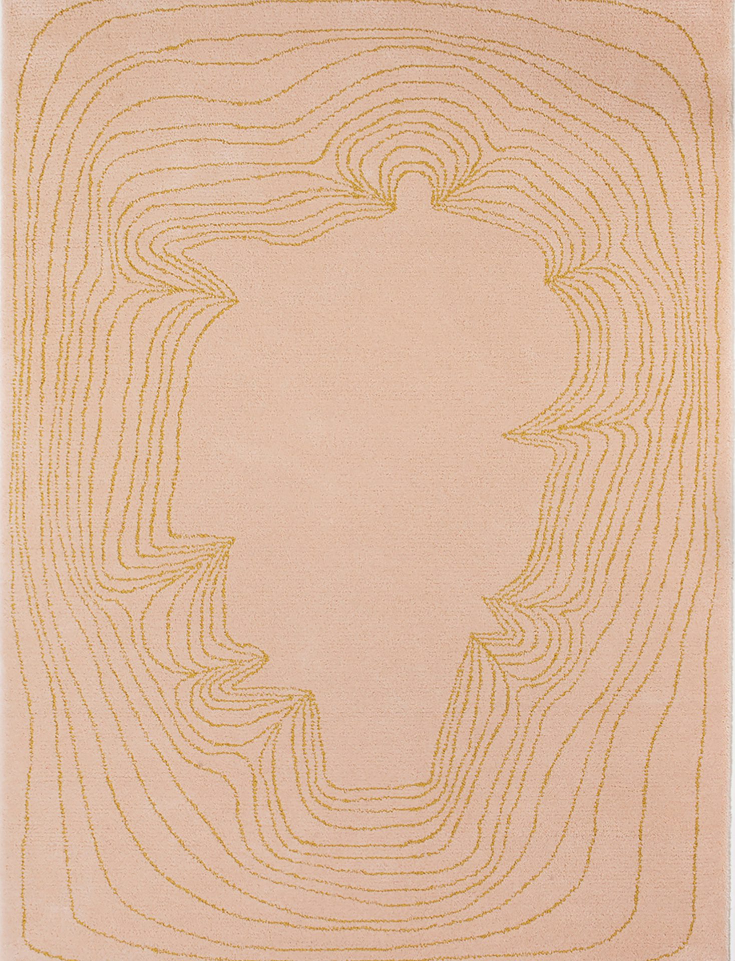 The patterns of the rug creates associations to cartographical lines and at the same time it refers to the pattern drawings of the Wiener Werkstätte, found in the online collection of the MAK Wien.
